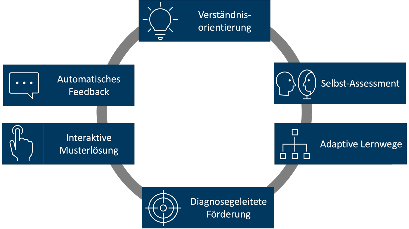 Für die Schülerinnen und Schüler, die mit der Mathe-GO-App arbeiten, soll ein nachhaltiges Lernen durch den Aufbau eines inhaltlichen Verständnisses ermöglicht werden. Damit dies gelingen kann, sollen die Kinder ihre Schwierigkeiten bedarfsgerecht aufarbeiten. Dafür werden verständnisorientierte Diagnoseaufgaben angeboten und der Lernprozess durch verschiedene Darstellungen (z.B. Stellenwerttafel, Zahlenstrahl, Punktefelder) unterstützt.